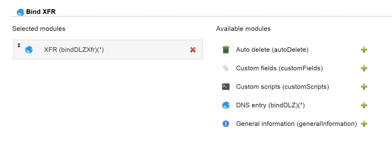 Now use the "XFR (bindDLZXfr)(*)" module for this account type.