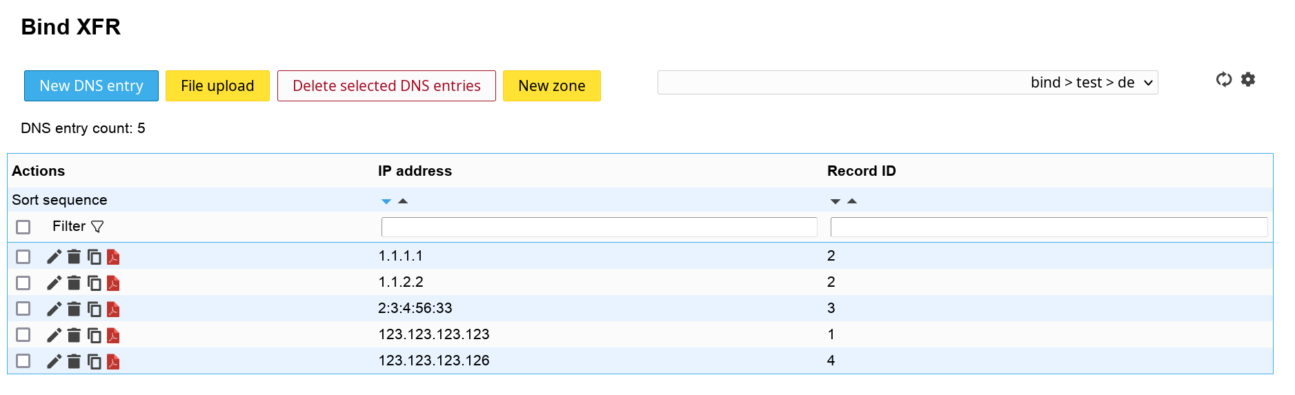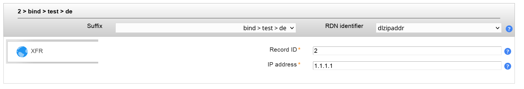 If you want to edit XFR entries please add a second account type for XFR. Recommended list attributes are "#dlzipaddr;#dlzrecordid".