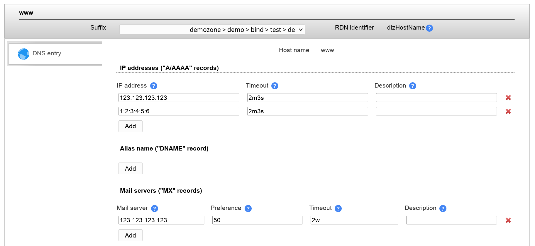 For regular entry management use "DNS entry (bindDLZ)(*)" module.